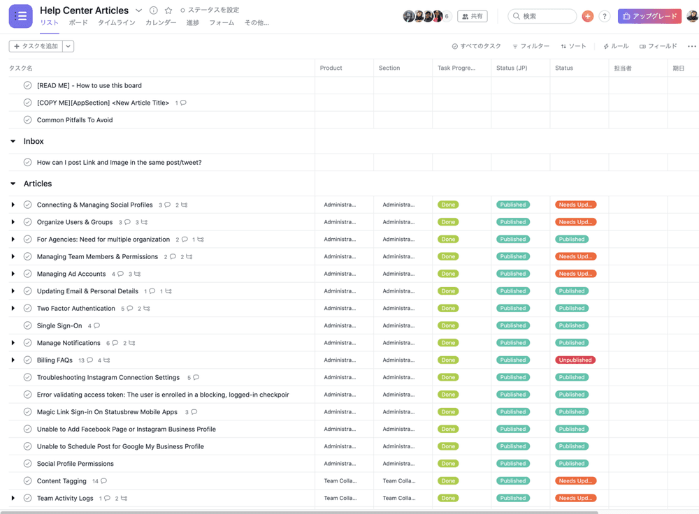 Statusbrewの「ヘルプセンター」をつくり上げるためのストラクチャーとタスクです!