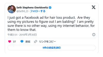 ↑「育毛剤の広告がFacebookで表示されたんだけど俺の最近の写真みてんの?」というコメント。笑っちゃいました。