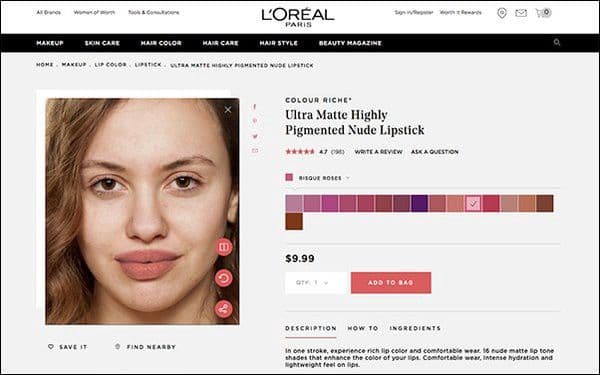 ロレアルパリはアプリなしで自分の顔にあったリップカラーが試せます